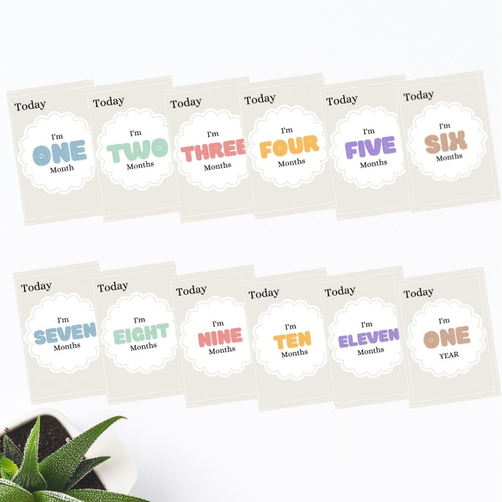 بطاقات مراحل النمو تساعدك على حفظ جميع محطات نمو طفلك الثمينة عن طريق التقاط صورة مميزة لطفلك بجانب البطاقة.