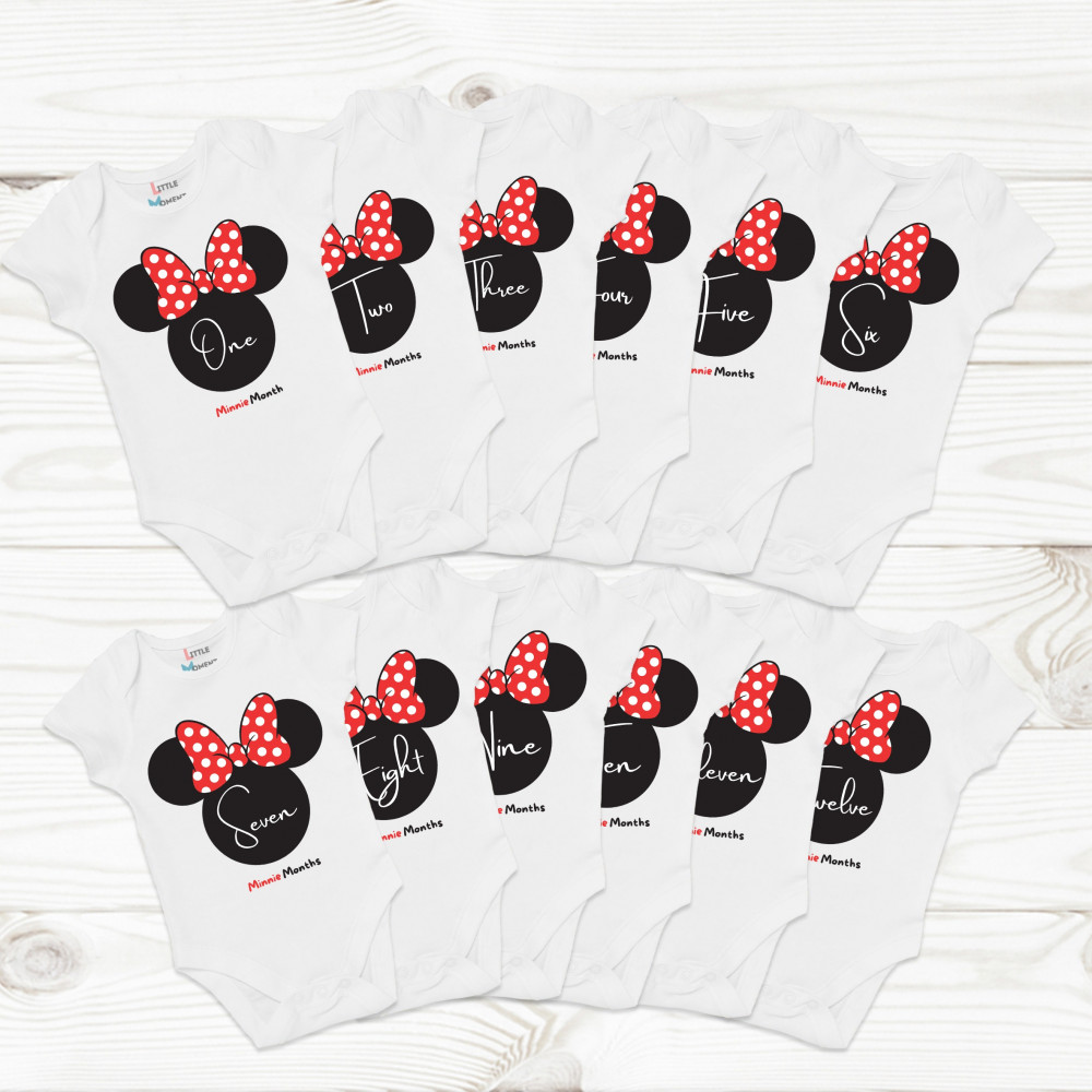 بوكس الأشهر بتصميم ميني ماوس يحتوي على 12 أوفرول, من شهر الى اثنى عشر.